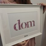 Napis Dom, fioletowa gipsówka, 30×40